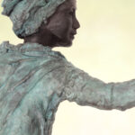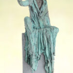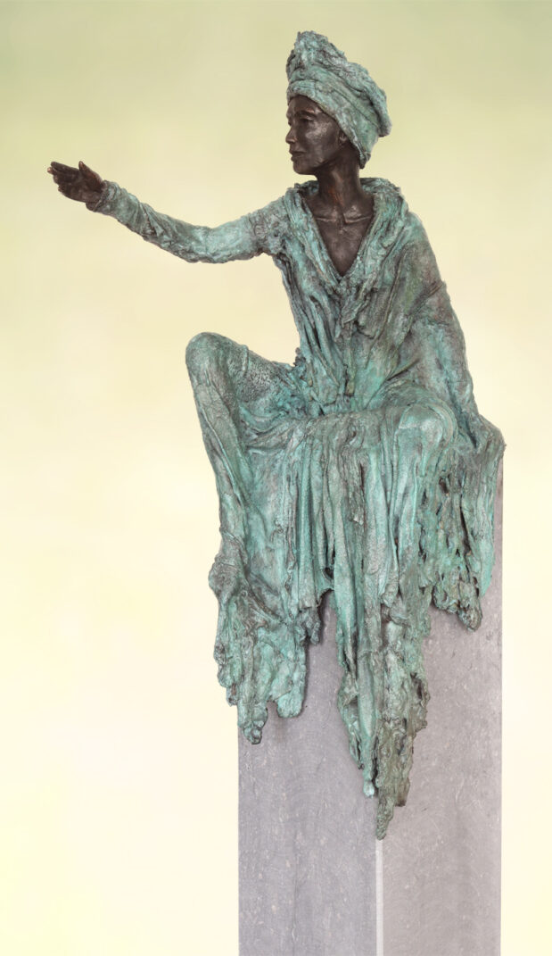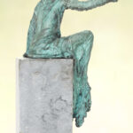 Hoogte/ height: 130 cm., brons/bronze: 67 cm., hardsteen kolom/bluestone pedestal 100 cm.